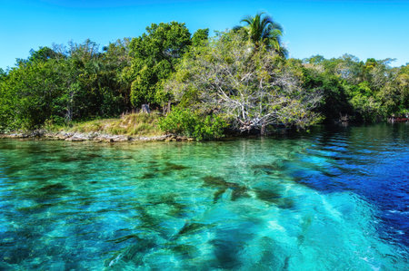A Cenote in Mexico, Bacalar as seen from the water