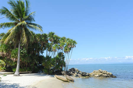 Tropical beach with turquoise sea water and blue sky