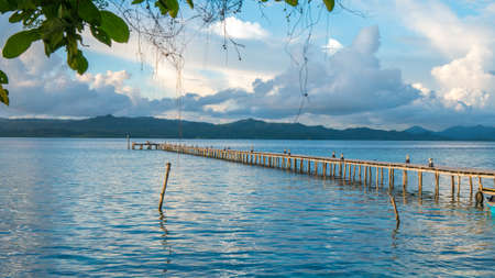 Pier of Dive Station on Kri Island. Clound above Gam Island in Background. Raja Ampat, Indonesia, West Papua.