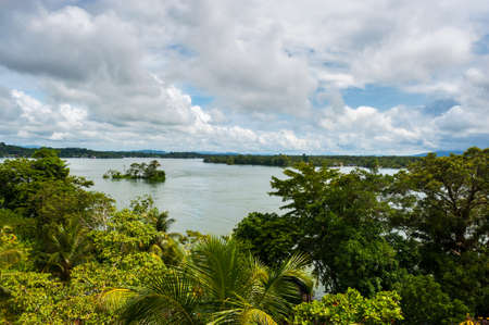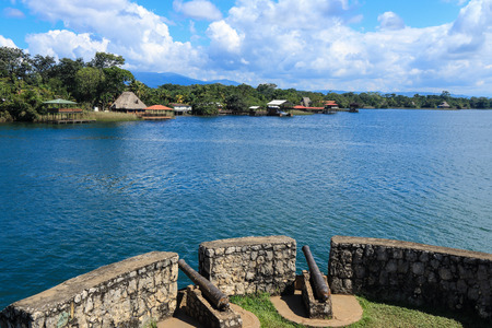 View from Castillo de San Felipe de Lara, looking out over Lago Izabal. Castillo de San Felipe is a fort located at the entrance to Lago Izabal in Rio Dulce, Guatemala. It was built by the Spanish in 1644.