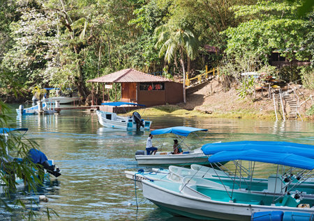Boats in the mouth of the Rio Agujitas in the Drake Bay, Costa Rica