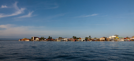 Houses on the shore of the island of Colon in Bocas del Toro which is the capital of the province of the same name in the Caribbean West of Panama.