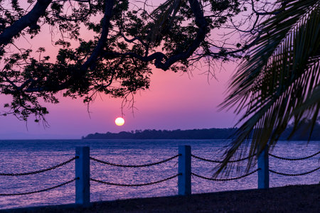 Tropical sunset at Ometepe vulcano island in southwest Nicaragua Lake Cocibolca in Nicaragua.