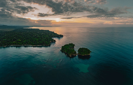A top view shot of a beautiful island in Costa Rica, USA