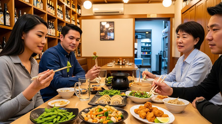 Tokyo, Japan, November 1, 2023: Customers dining in a cozy Japanese izakaya at night