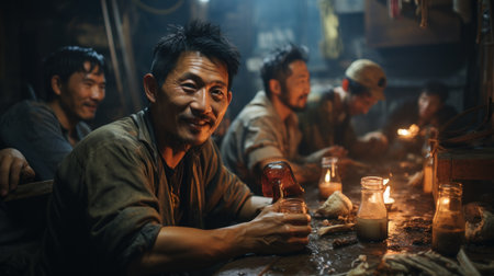 Rustic lantern illuminates old fashioned Chinese bar inside modern city establishment generated by artificial intelligence