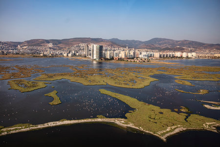 Magnificent visual of Izmir Karsiyaka wetland with drone