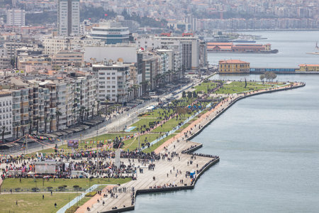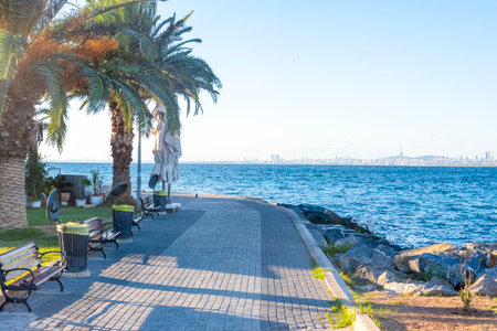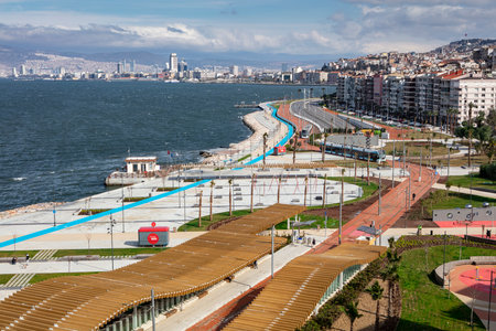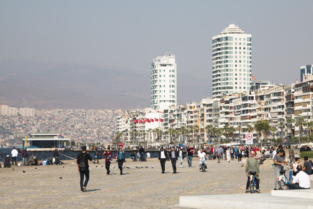 IZMIR, TURKEY - OCTOBER 2017: The main promenade next to the Aegean sea in Izmir in Turkey