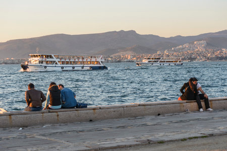 Izmir, Turkey - April 21, 2016:Izmir coast is used especially for summer vacation, intensive navigation by people.