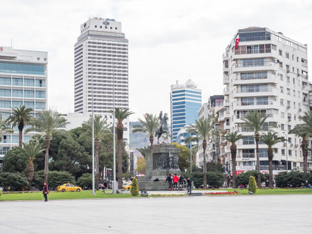 Ataturk Statue view in Cumhuriyet Square. Cumhuriyet Square is popular tourist attraction in Izmir - Turkey