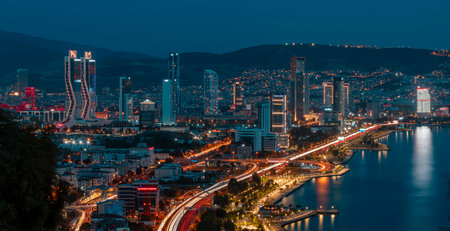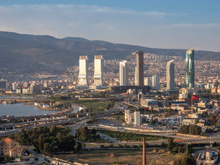 Izmir, Turkey - December 9, 2025: A view from Bayraklı Hill, Izmir's new skyscraper district.