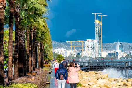 Limassol, Cyprus - December 25, 2019: Molos Promenade at the beach front in Limassol, Cyprus
