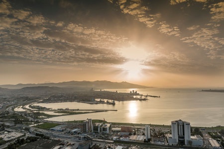 Landscape of the Coast of Izmir and Aegean Sea seen from the old elevator of Izmir