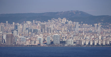 Landscape of the Coast of Izmir and Aegean Sea seen from the old elevator of Izmir with copy space