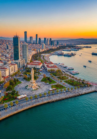 Kordon, Alsancak, Izmir City. Beautiful city view of Izmir, Turkey.