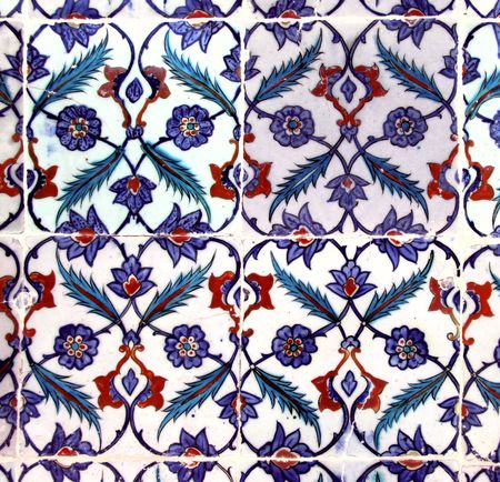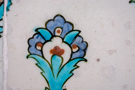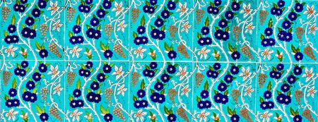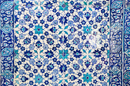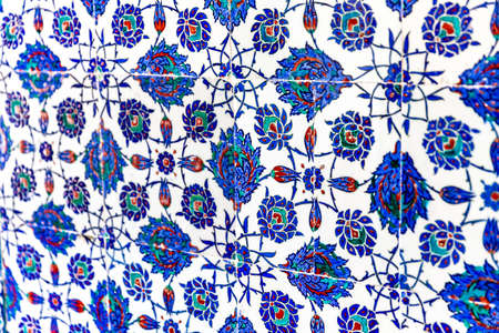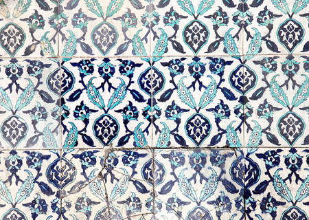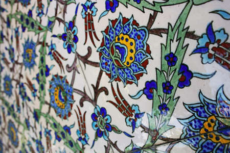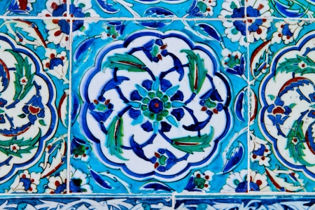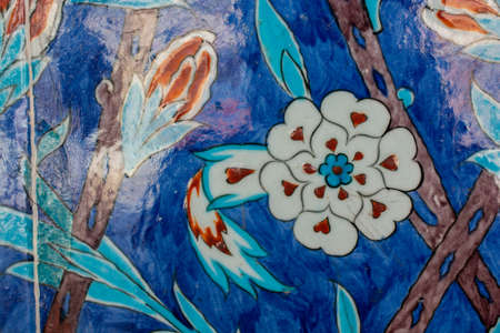 Ancient Iznik tiles from Istanbul, Turkey. Close up ceramic tile background