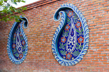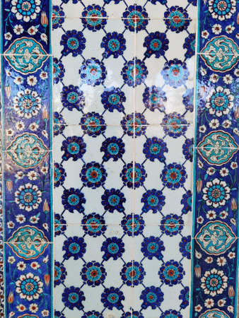 National Turkish ornaments on ceramic tiles on the wall of a mosque in Istanbul. Turkey