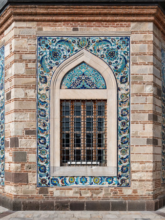 Bursa,Turkey - 12-27-2016:Bursa Green Tomb decorated with tiles on its exterior.The tomb was built by Sultan Mehmet Çelebi in 1421