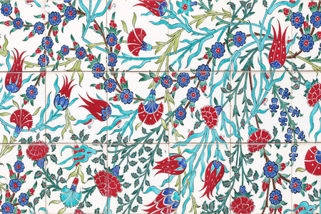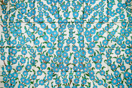 Ancient Ottoman handmade turkish tiles with floral patterns from Topkapi Palace in Istanbul, Turkey