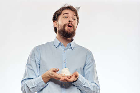 Man in jacket is looking at the camera on an isolated white background close-up.