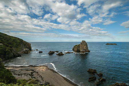 Beautiful blue sky and green and natural scenery of the sea in Kitanagato Coast Quasi-National Park