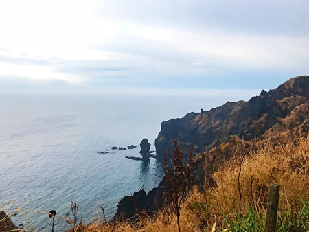 The coast and sea view from Seongsan mountain in Jeju island, South Korea.