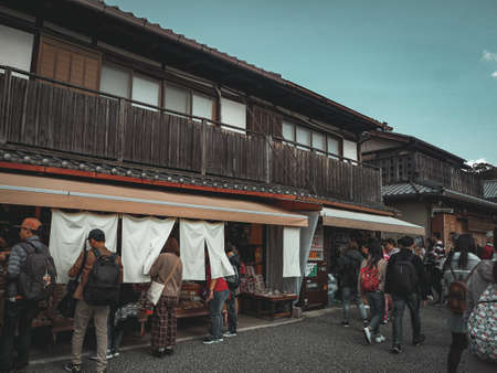 Hyoto, Japan, December 7, 2019: Many people in the Japanese market