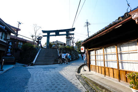 Fukuoka, Japan - March 19, 2016: Tourists are traveling in the shopping street of Dazaifu shrine.