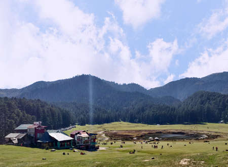 Panoramic View of Green Meadow Surrounded by Deodar Tree in Himalayas, Great Himalayan National Park, Sainj Valley, Shahgarh, Himachal Pradesh, India