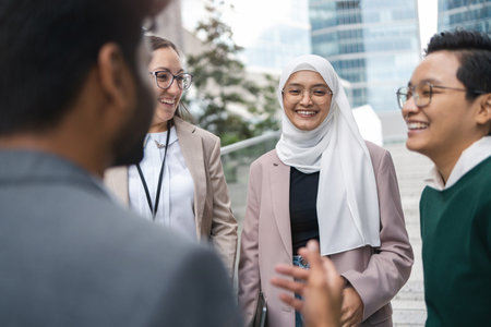 Multi-ethnic group of young business people outdoors in the city
