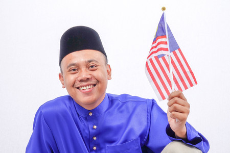 Asian young man with Malaysia flag for National Day celebration.