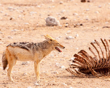 Black-backed Jackal Feeding on Carcass, Etosha National Park, Namibia, Africa
