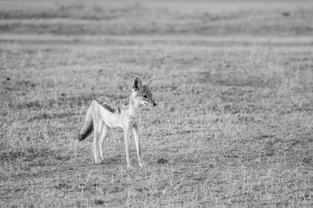 Black-backed jackal in the savannah of Serengeti National Park, Tanzania