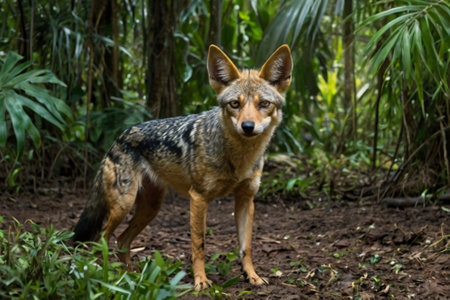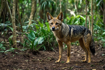 A black-backed jackal (Canis mesomelas) in a forest