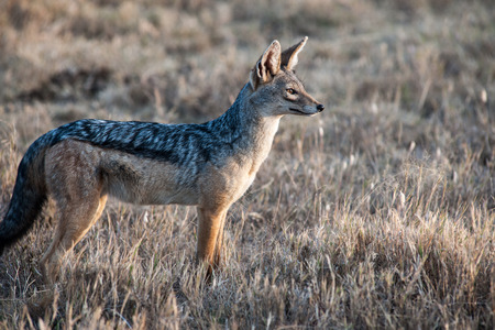 Black-Backed Jackal, canis mesomelas, Masai Mara Park in Kenya