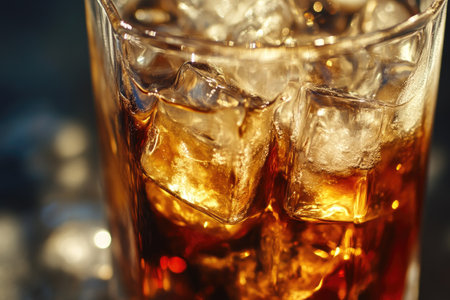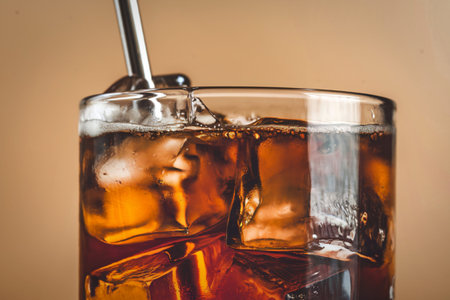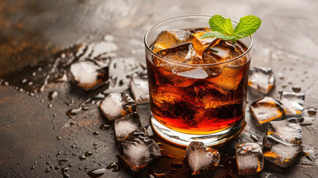 Refreshing Cola cocktail with chilled ice cubes