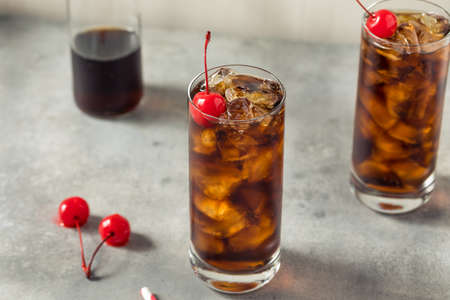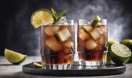 Rum and cola with ice. Cold cocktails for summer parties. Alcohol.