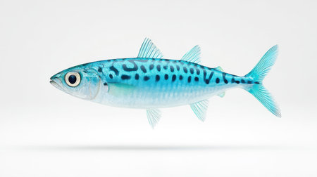 High-resolution image of mackerel with clear scale texture and fin details, set against white background for clean look