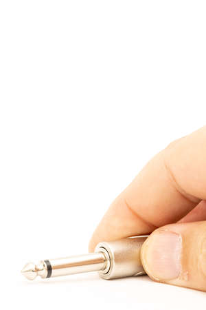 Hi Fidelity TRS 6.3mm Audio Jack, with golden connector isolated over white background