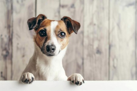 Adorable jack russell terrier dog with paws on edge looking with interest