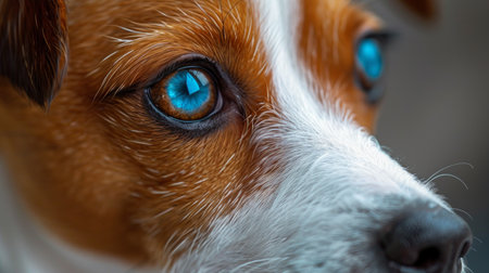 captivating close-up of a dogs blue eyes, filled with warmth and wonder. The soft fur and gentle expression create a sense of intimacy and connection.