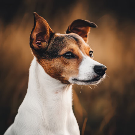 Portrait of jack russell terrier dog outside in the evening