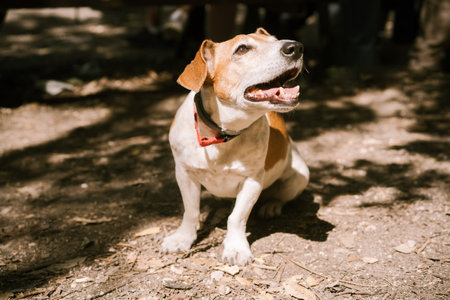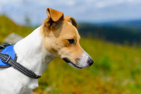 Portrait of a cute Jack Russell Terrier on a hot summer day