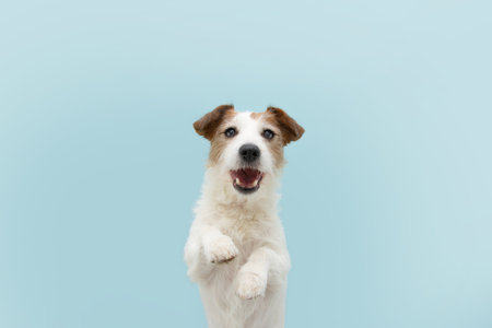Cute jack russell terrier is posing on a turquoise background