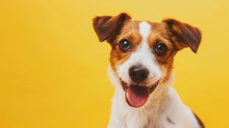 Funny Jack Russell Terrier dog with open mouth on yellow background
