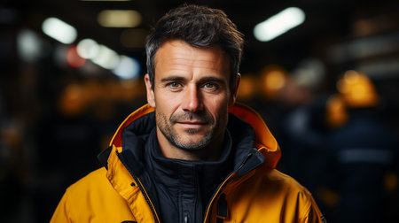 A diverse engineering team poses confidently together, showcasing professionalism and unity in a modern workspace. Each individual brings unique skills and energy.