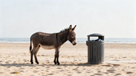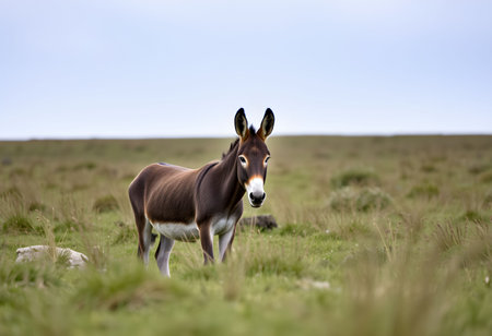 the donkey, with its adorable fur and curious gaze, takes center stage in this extreme minimalist photography, reminiscent of wes anderson's quirky style, against a stark white background, evoking a sense of simplicity and elegance, perfect for fans of minimalism and animal lovers alike. ai generated