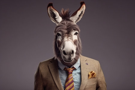 Portrait of a donkey dressed in a formal business suit, generative ai