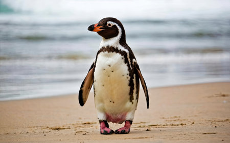 Penguin walking on shore on a sunny day, isla magdalena Coastal wildlife.