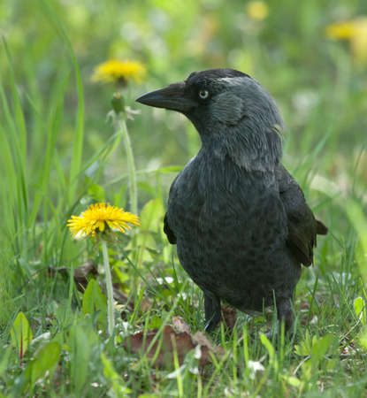 The Jackdaw, or Daw, (crow family, Corvus monedula) in the nature.